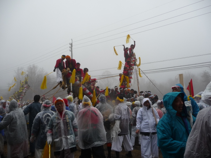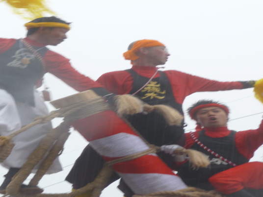 前回は雪で始まりましたが、今回も冷たい雨の中曳航が始まりました。