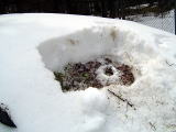 ふきのとうは雪の下から掘り出すものが一番くせがなくておいしいと思います。リスじゃないのでにおいでは分かりません。脳内電磁波を発信するんです。できるでしょう、あのおいしさを頭に浮かべて雪の上からスコップを入れるんです。ご覧のとおりでございます。どんなものでも手間隙をかけるからおいしい物に出会える、そうでしょう あのやまぶどうと同じです。
