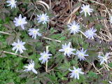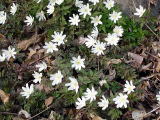 アズマイチゲ(←)とキクザキイチゲ(↑)水芭蕉の咲く斜面に咲いていました。
