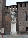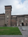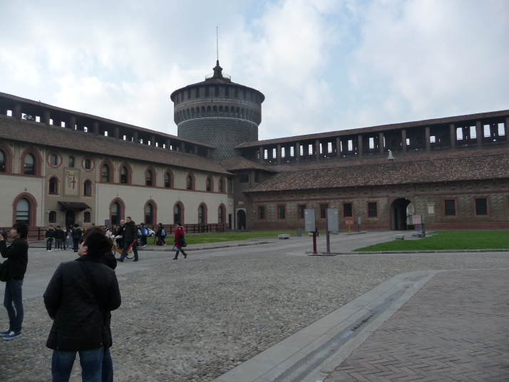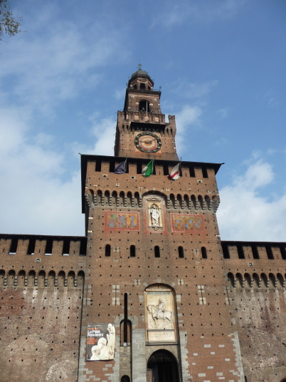 スフォルツェスコ城に到着 1450年にミラノ公爵フランチェスコ・スフォルツァがヴィスコンティ家の居城を改築して現在の姿となった。内部にはミケランジェロの最後の作品「ロンダニーニのピエタ」などが展示されている