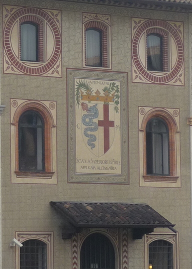 アルファロメオのエンブレムの元になっているそうです。へびが逆がロメオのマーク