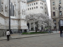 サクラと朱モクレン エレベーターの切符売り場はモクレンの向かいの角でした