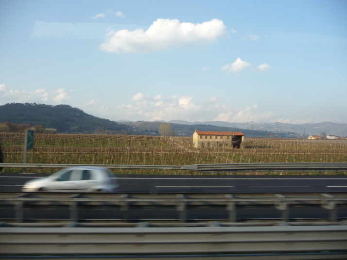 バス移動の高速からみるブドウ畑
