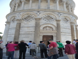 城門をくぐると 遠くに斜塔が見えます。ほー・・・・・と皆さん感嘆のお声を発しまする。 この方が有能な添乗員です。時に機関銃のように発射しますが まあそのくらいじゃないとね。まだ早いので人はあまり多くはありません。お土産やサンもこれからお店を開くところです。 到着は9時半過ぎごろかな |