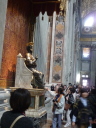 聖ペトロの像 サンピエトロ寺院はこのペトロのお墓の上に建てられました。足に触ると幸運が来る というのでつるつるになっています。 当時はここに巡礼に来て帰ることもまた幸運がなければならなかったのです。