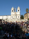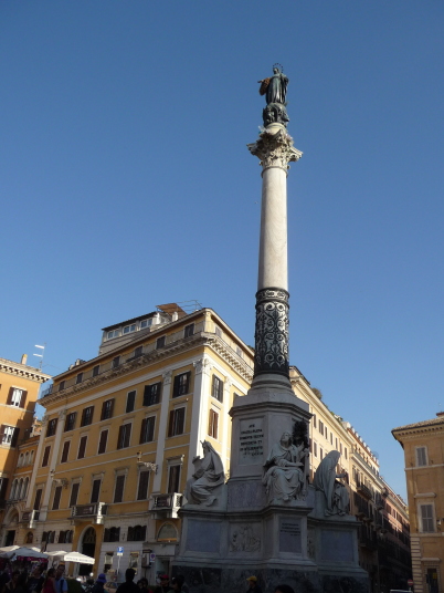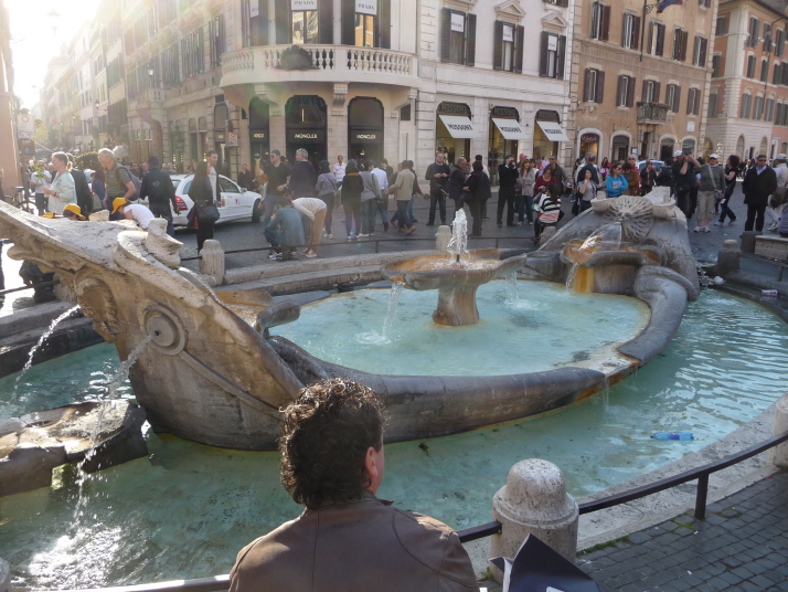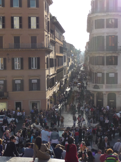 トレビの泉からスペイン広場に行く途中にある マリアの像 ミグナネリ広場 スペイン広場はそばにスペイン大使館があったということからの名前です。 広場の下には噴水バルカッチャの泉 ベルニーニの父作ですよ。ローマは噴水が好き 彫刻だけでは硬いので水のやわらかさを求めたんじゃなかろうか? アチこちの噴水の水はどこから? 琵琶湖からなんて ! 階段の上から見下ろすと ローマのブランド通り、コンドッティ通りから、最奥のフェンディ本店までを見渡すことができます