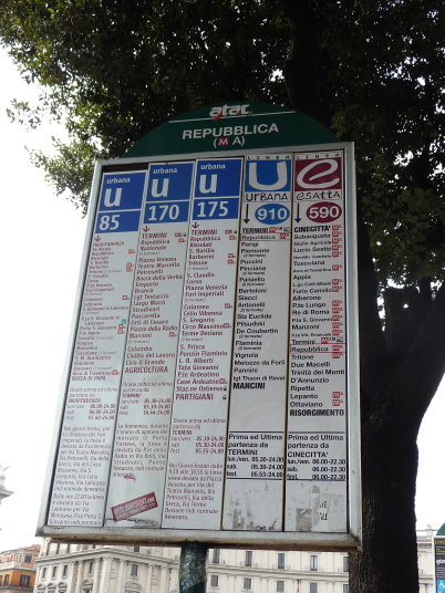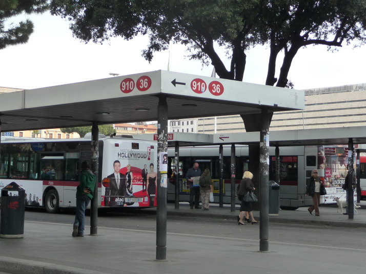 テルミニ駅で降りてバス910を探します。 バスが止まっていたのでさっそく乗り込みました 車内にはバス停の表示が出ないので降りるところまで気をつけるしかない