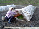 五郎山から降りてきましたら 田んぼで田植え前の稲をビニールハウスで育苗しているのをみせてもらえました。 一つ一つ段取りがありますねー。やさしいおばちゃんでした。