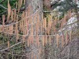 ツノハシバミの雌花と雄花 が分かりますか。ジャパニーズヘーゼルナッツです。リスちゃんも食べます。利休が愛でた ツノハシバミ 秋にたくさん収穫しても後処理が大変なんですねこれが。