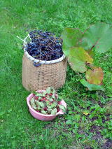 きのこのつぎは、やまぶどうですよ。実際は、やまぶどうとえびづるがまざっているようですが見かけは区別がつきません。 自然の恵みにありがとうでございます。 たくさんはとれないのでヒュッテにやまぶどうのたなを作りました。こうごきたいください。