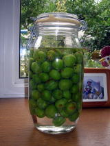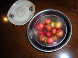 さてさて、スモモができました。道路わきのスモモがやはり元気がよくて実をつけてくれました。5年前のように、果樹園の収穫とまではいきませんが、まあ自然のままですからこの程度で、さっそくお酒につけました。プーンとあまずっぱい匂いがとんできていました。