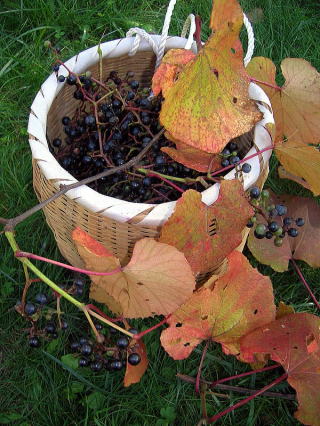 平成18年10月8日 やまぶどうの二回目の収穫。庭で山葡萄が採れるなんて最高ですよ。ショウゲンジやサマツも採れましたね。温室のある脇でクルミがたくさん落ちていたので拾いました。普通は三井の森で集めます。ヒュッテの階段の下に置いておくと11月に来た時には何もありませんでした。自由農園でナイヤガラを310円で購入しまして お酒にいたします。ジュースのようなお酒に仕上がります