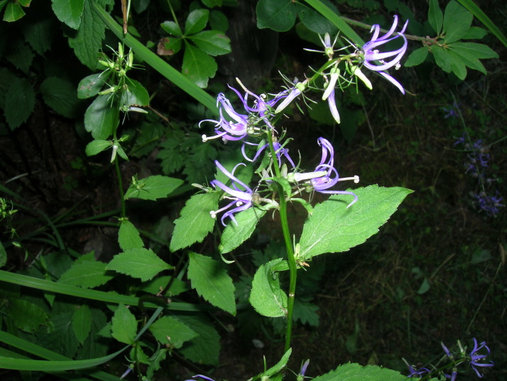 写真と順序があっていないかもしれませんが シデシャジン(紫色 これもキキョウの仲間。オシベ完熟花 私にお気に入りです。ちょっと変わっているでしょ。あまり話題にならないところがいい。 アザミは野アザミ(花が一つだけ)と野原アザミ(総苞ー花の下の針のあるところの形) ユウスゲ 大松宵草 つまらない帰化植物と思っていましたがていねいに見るとなかなか味わいのある花です。大きくならない日蔭のもののほうが美しいですよ。ナガハキリンソウ・キオン・ヒョウタンボクの実(毒) カメバヒキオコシ 旅人が倒れそうになった時この草で助かったと言う。 クルマバナ難と言うことのない花ですが名前はついています。 イブキボウフウ 日のよく当たるところではもっと花が大きい