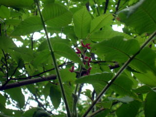 これは? ヤマブドウの雌花 右はクルミの雌花 今年はヤマネに食べられずに実ができるでしょうか