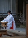 新年を迎えまして、諏訪大社へ初詣に出かけました。左が上社前宮 右が上社本宮本宮は屋台のお店が並んで正月明けの4日でも、たくさんの人出でした。それでも車はすぐに止められましたから三が日ほどではありません。 ちょうど本殿に参拝していると神職の方がなにやら詔を読み始めました。よく見ると右側では拝礼のままの神職の方がおられます。巫女さんがなにやら運んで来ましたねえ。 何のことやらよく分からないところが いとおかし