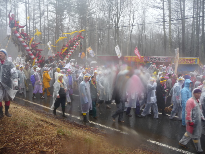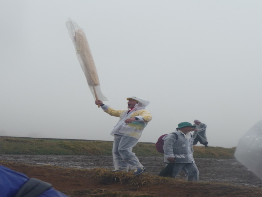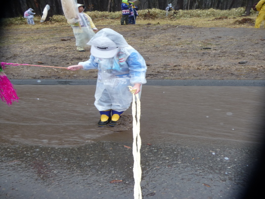 前回は雪で始まりましたが、今回も冷たい雨の中曳航が始まりました。