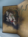 国宝 狩野永徳 檜図屏風 細部に永徳の伸びやかさに欠ける図案化されて表現が見られる さあどうでありましょうか 迫力は十分です。 我が家の3月の三人官女の飾り屏風に購入いたしました。