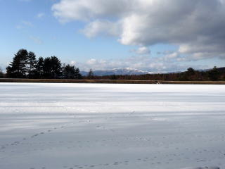 つきの池全面氷結 私も氷の上を歩きましたよ こわーーーー