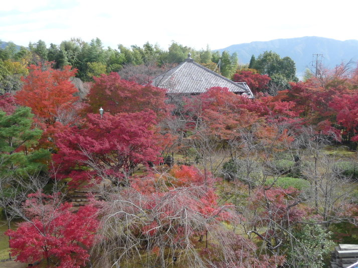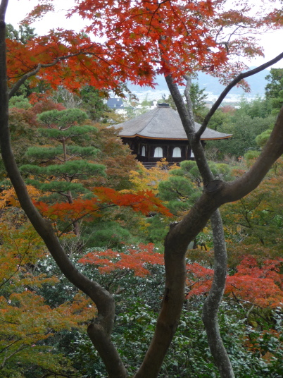 2 東福寺の戻り 南禅寺へタクシーを拾うと 運転手が将軍塚が紅葉の盛り素晴しい眺めです 大日堂 普段なら話には乗らないのですがちょうどガイドに地元の隠れ名所と書いてあって、南禅寺まであるくといい 静かで