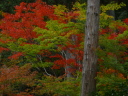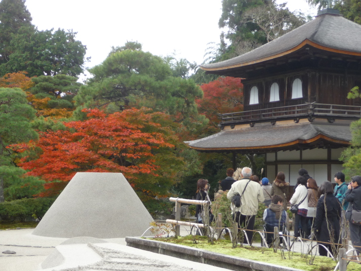 4 ご存知 銀閣寺 モミジはあくまでささやかに 緑の中に一際真紅のアクセントでした ここが金閣とまた違って 侘びさびの世界でごじゃる