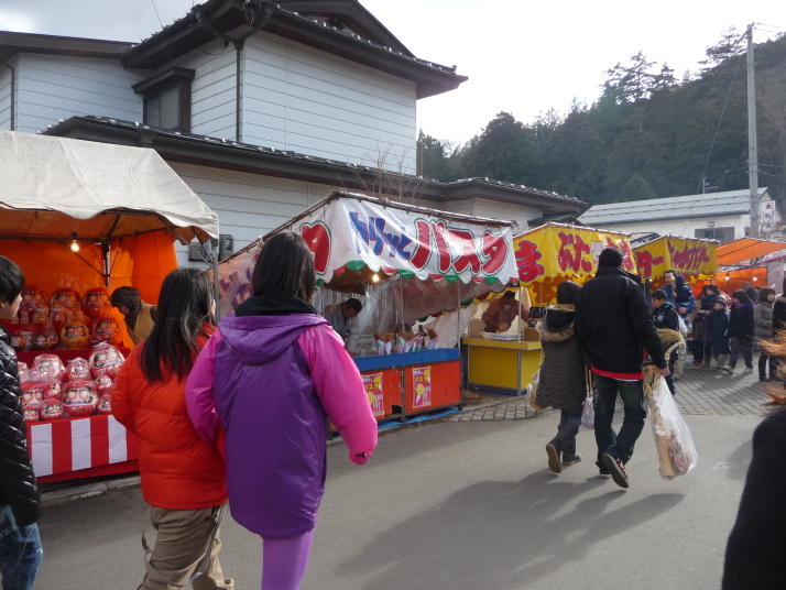 一の御柱 たきびがいいです 街中は焚き火も煙でなかなか