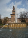 スフォルツェスコ城に到着 1450年にミラノ公爵フランチェスコ・スフォルツァがヴィスコンティ家の居城を改築して現在の姿となった。内部にはミケランジェロの最後の作品「ロンダニーニのピエタ」などが展示されている