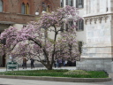 サクラと朱モクレン エレベーターの切符売り場はモクレンの向かいの角でした