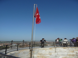 ここが一番上 旗が風にはためいているところがよかったんですが 残念ながら 本日 快晴微風 波静かなり 時間になると係りの人が「もう降りてください。」という指示をだします。もちろん イタリア語?いや英語のような気がしましたが? 何語でも その場の様子で分かるものよ 今回はイタリア語べらべらじゃなくても 地下鉄・バス・食事 OK だったものね 大事なことは 伝えようとする行動です。 英語の先生はそこのところをよく考えないとね |