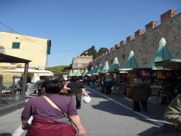 帰り道 行きにはまだお店を開けていませんでしたが 同じブルーのとんがりテントの露店が行儀よく並んでいました。 斜塔のチケット売り場の横にショップがあったので そこでお土産は買いました。斜塔のキーホルダー 斜塔を立てると本当に斜めっているのに感心というかびっくりといいますか なるほどでした。 |