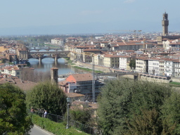 アルノ川と右の端の尖塔は ブェッキオ宮殿の鐘楼です。 シニョーリア広場はこの宮殿の前にあります。 |
