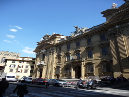 | サンタ・クローチェ教会の広場からは、Borgo de' gureci( グレチ通り)−(革製品ショップ)を通ってシニョーリア広場へその広場前の角にあるのが サン・フィレンツェ教会 |