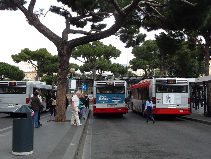 テルミニ駅で降りてバス910を探します。 バスが止まっていたのでさっそく乗り込みました 車内にはバス停の表示が出ないので降りるところまで気をつけるしかない