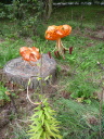 オニユリ ネズミが球根を食べるので 樹脂のガードをしてみましたが上手くいけば来年はもっと花が増えるはずです。