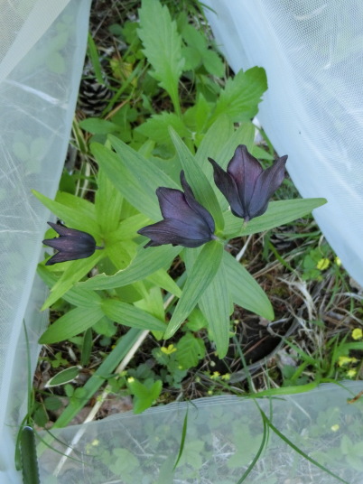 鹿よけの窓用網戸で囲った クロユリ 完全防御 ですが種が外には飛びません