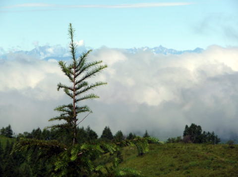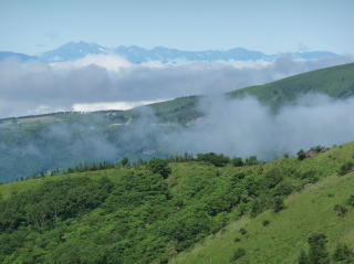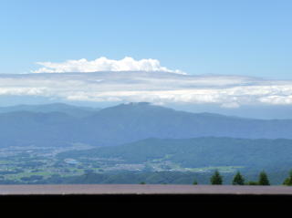 夏の山と雲 誰にも合わずに2時間半 蓼科の山の散歩 遠くに槍ヶ岳が