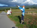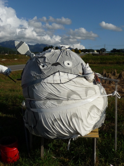 去年までは確か入り口の3つだけだったような気がしましたが いつの間にやら仲間が増えました。記念写真を一緒に撮っていく観光の方が多いようです。すずめ除けになっているのかどうかそれを知りたいですね。雀もたくさん集まっていたりして !